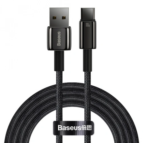 Кабель Baseus Tungsten Gold Fast Charging Data Cable USB to Type-C 100W 1м, Чёрный (CAWJ000001)