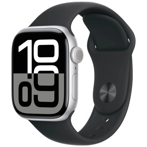 Apple Watch Series 10, 42 мм, серебристый алюминий, спортивный ремешок цвета "Black", S/M (MWWW3)