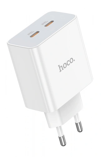 Сетевое зарядное устройство Hoco C108A Leader 2xUSB-C, 3А, PD35W + USB-C кабель Lightning 8-pin, 1 м, Белый