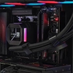 - Арктическое охлаждение: За стабильную температуру процессора отвечает трехсекционная СЖО DEEPCOOL LM360 ARGB. Она не просто эффективно охлаждает, но и служит центральным элементом визуальной композиции.