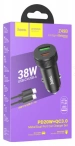 Автомобильное зарядное устройство Hoco Z49B USB-C+USB-A PD38W + кабель USB-C to USB-C, Чёрное