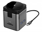 Хаб с беспроводной зарядкой Wiwu Cube Hub 9 в 1 USB-C Docking Wi-W025, Серый